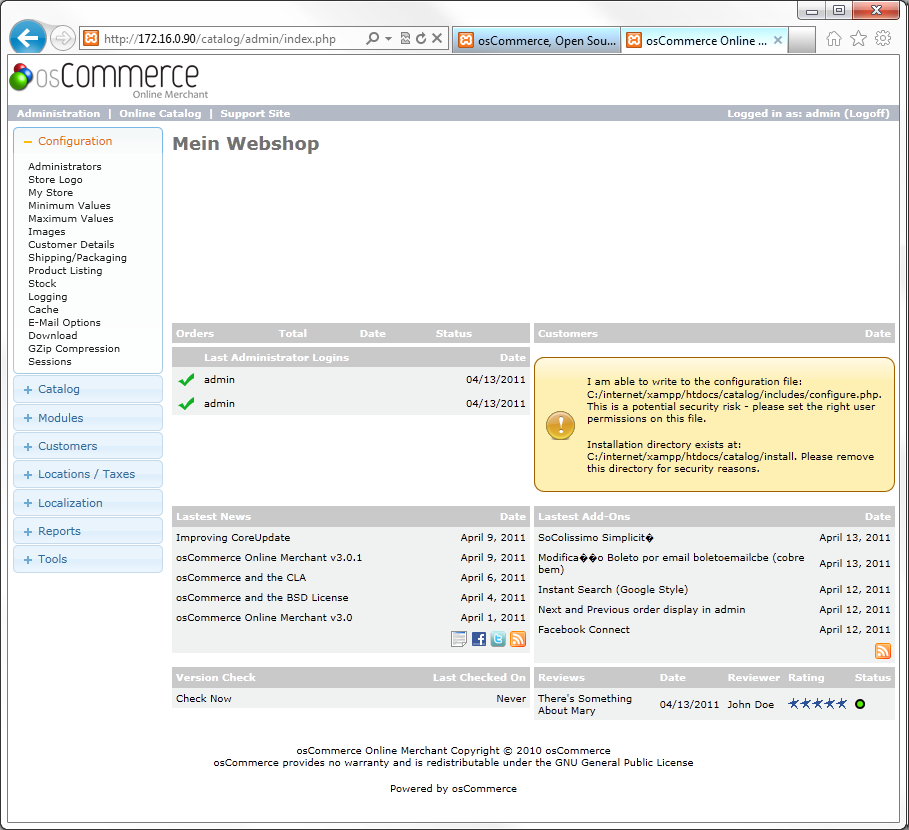Einrichtung eines Webshops Teil 2 - Installation osCommerce
