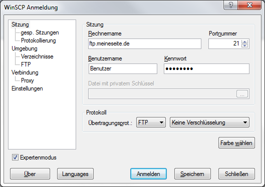 Nachdem Sie sich für osCommerce entschieden haben und die Installationsdateien (oscommerce-2.3.1.zip) heruntergeladen haben, müssen Sie diese in einen lokalen Ordner entpacken. Mit Hilfe eines FTP-Programms (z.B. WinSCP) muss der Inhalt des Verzeichnisses "catalog" auf ein geeignetes Verzeichnis Ihres Webservers hochgeladen werden (Wir verwenden hier das Verzeichnis "catalog" im Hauptverzeichis Ihres Webservers). Verwenden Sie die FTP-Zugangsdaten, die Sie von Ihrem Internet Dienst Anbieter (ISP = Internet Service Provider) erhalten haben :