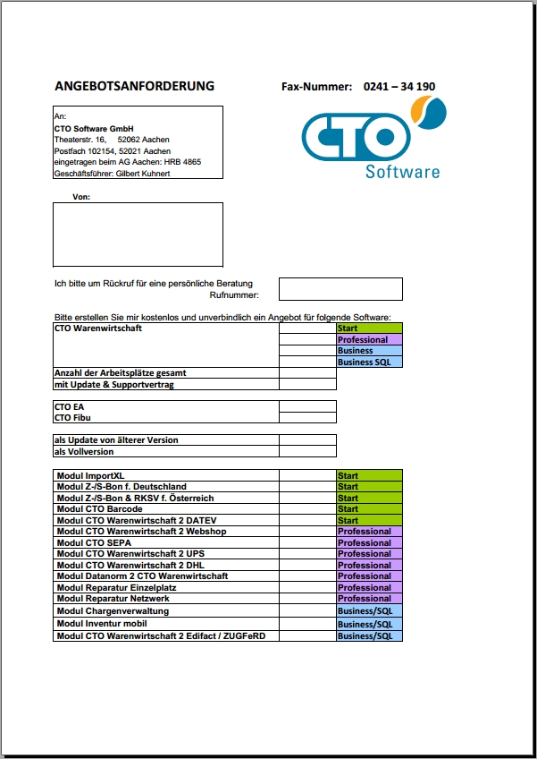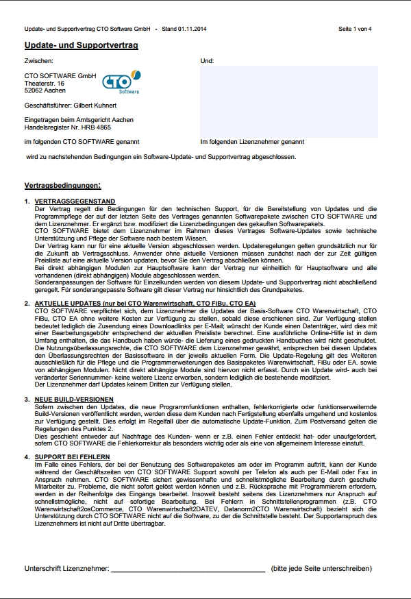 Gegenstand des Auftrags sind die Rechte und Pflichten der Vertragsparteien im Hinblick auf die Verarbeitung personenbezogener Daten im Sinne der EU-DSGVO. Diese erfolgt durch die CTO  Software, im Regelfall bei der Wahrnehmung der Fernwartung, Durchführung von Datenanalyse zur Fehlerbehebung und zur Datenreparatur sowie zur Durchführung von Systemupdates oder beim Einspielen von sonderangepasster Software.